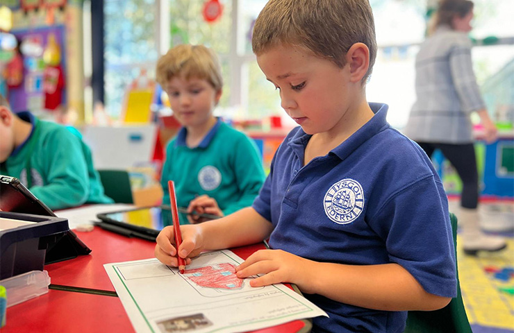 • Plant yn lliwio lluniau yn y dosbarth